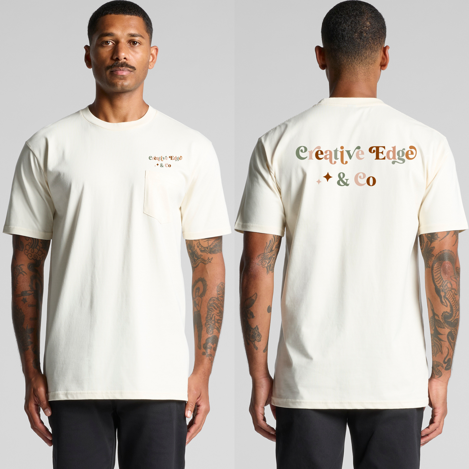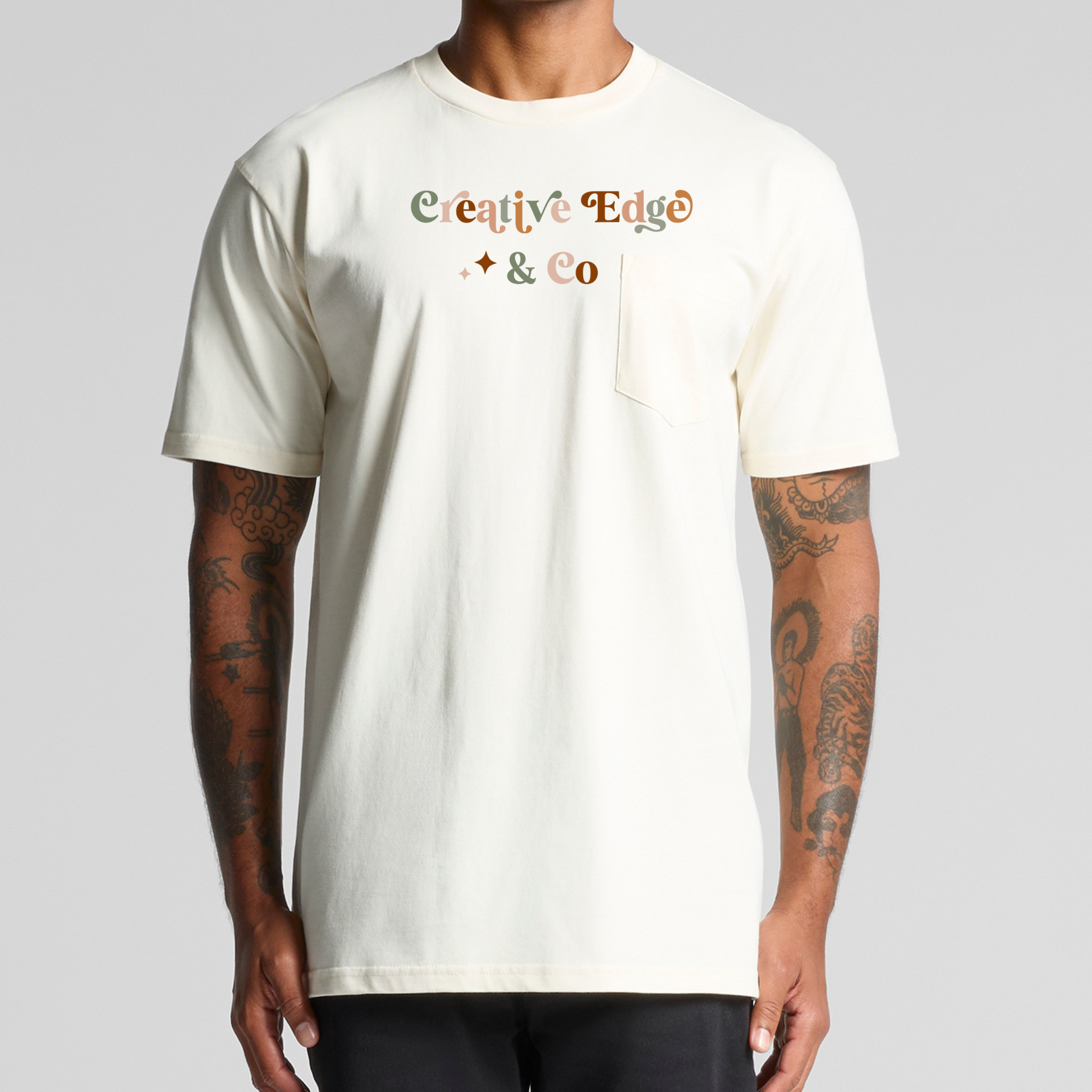 The AS Colour Classic Pocket Tee, perfect for printing. Its relaxed fit and heavy weight 220 GSM, 22-singles 100% combed cotton ensures durability. Features include a tonal colour chest pocket, neck ribbing, side seams, shoulder-to-shoulder tape, and double needle hems. Built to last with preshrunk fabric to minimise shrinkage.