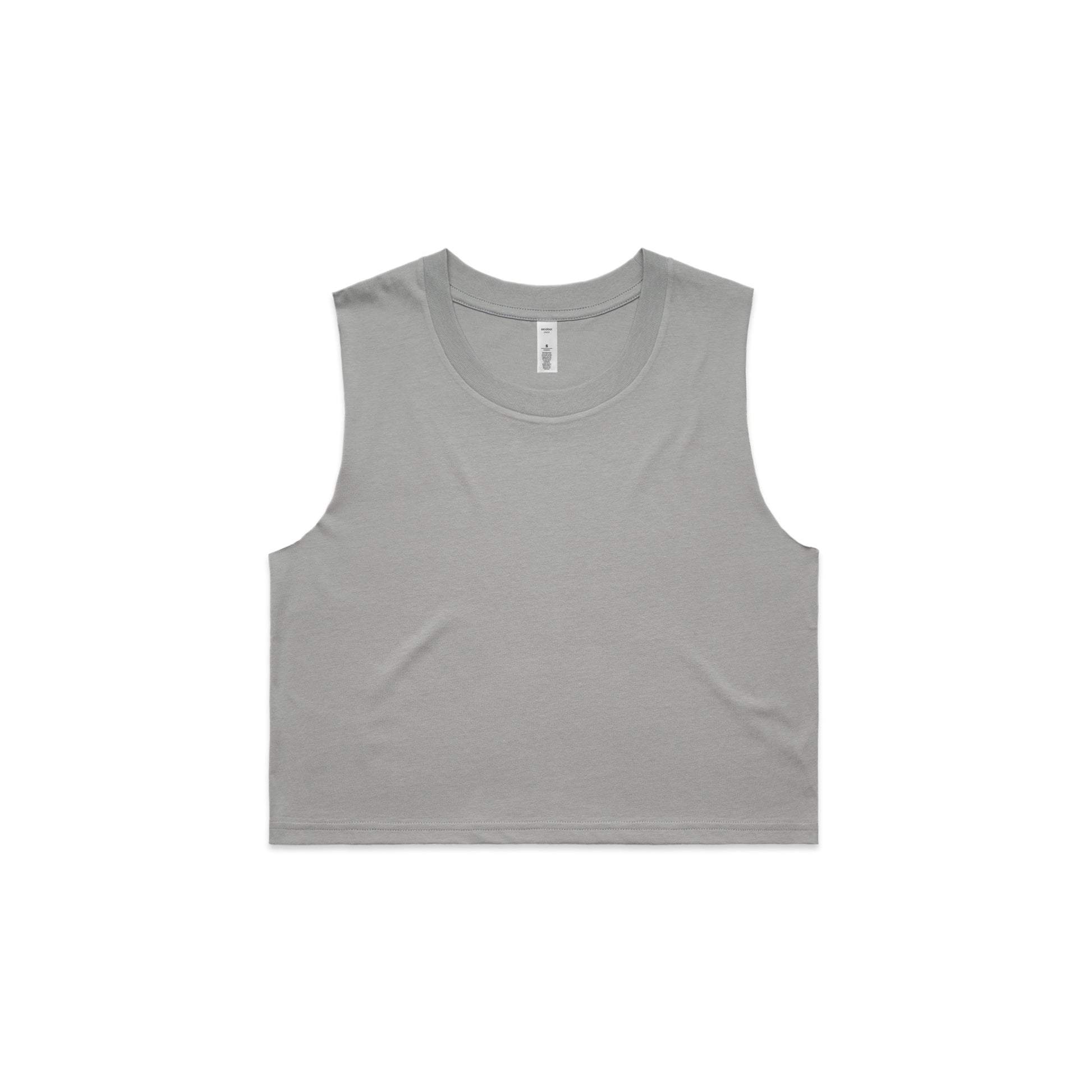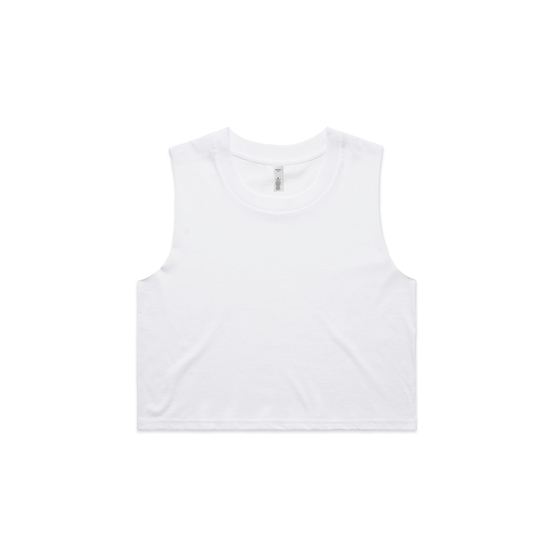 Short body, sleeveless tank, raw armhole edges, neck ribbing, double needle hems, side seamed, preshrunk to minimise shrinkage