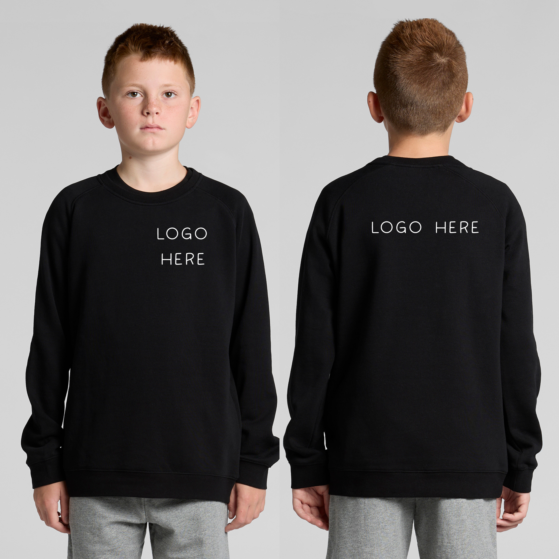 Construction: Crew sweat, raglan sleeves, neck and sleeve cuff ribbing, preshrunk to minimise shrinkage
